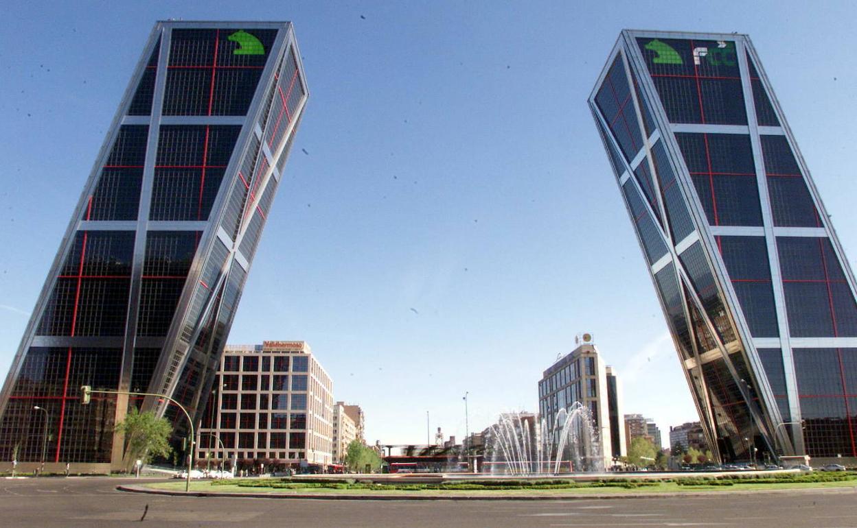 10、Torres KIO(114米)又名Puerta de Europa de Madrid, 马德里的欧洲之门,KIO是一家科威特公司 Kuwait Investments Office的缩写。双子办公大楼,高114米,26层,兴建于1990年到1996年。欧洲门由美国建筑师菲利普·约翰逊和约翰·伯奇设计,科威特投资局兴建,因此最初名为“KIO塔”。每座建筑物倾斜15度角,使其成为世界第一座倾斜的摩天大楼。靠近查马丁火车站,在卡斯蒂利亚广场公共汽车站一侧,卡斯蒂利亚大道以北,靠近西班牙四大楼商业区(CTBA)。在KIO塔诈骗案之后,科威特投资局已经出售这座建筑,原为马德里储蓄银行拥有,现属Bankia。中间是何塞·卡尔沃索特洛纪念碑,此人在1960年被弗朗哥政治迫害而惨遭暗杀而死,2004年在市长主持下进行部分改建,增加了一个92米高的金塔。